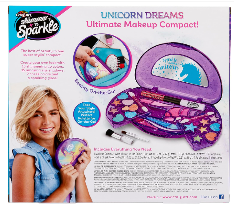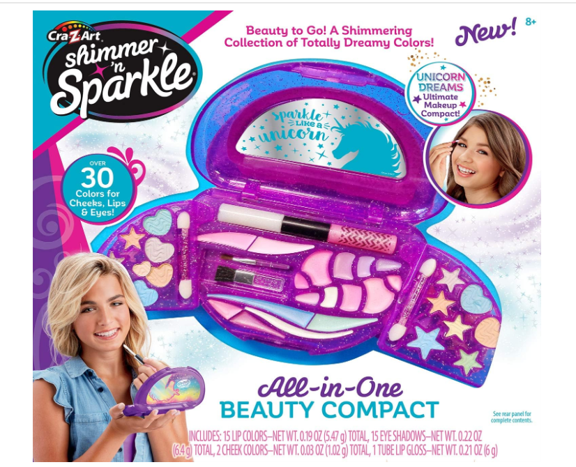 - MAKEUP CASE - The Shimmer’ N Sparkle All in One Beauty Compact is a great for fashionistas ages 8 and up.