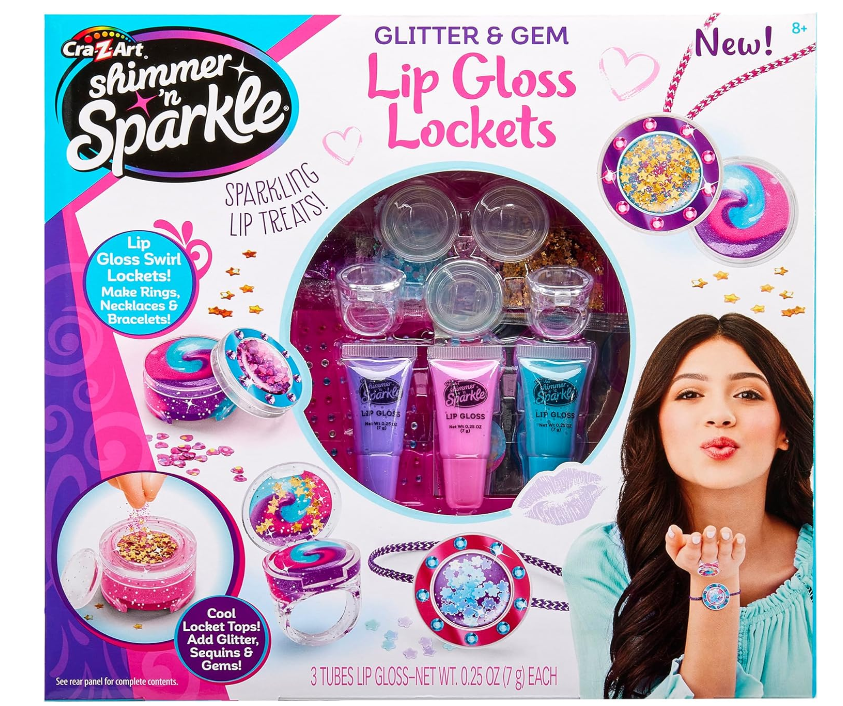 - Shimmer ‘n Sparkle Glitter & Gem Lip Gloss Lockets is great for ages 8 and up