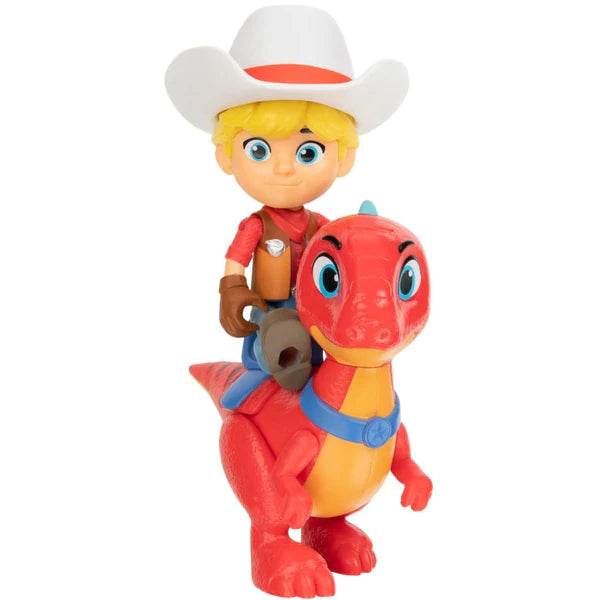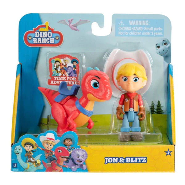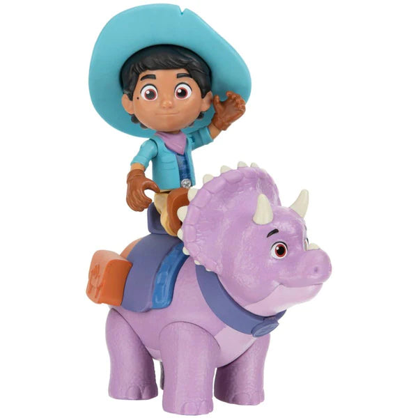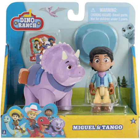 Es hora de montar y unirse a Jon, Min y Miguel en Dino Ranch! ¡Llévate a casa la aventura con el paquete de 2 Dino Ranch que incluye un Dino Rancher de 3" y un Dino mejor amigo de 4"! Hay tres estilos disponibles: Jon con el rápido velociraptor Blitz, Min con Clover, el gentil y adorable Brontosaurio, o Miguel con Tango, ¡un poderoso triceratops! ¡Cada Dino Rancher usa un sombrero que se puede quitar! A su hijo le encantará recrear sus escenas favoritas del exitoso programa infantil Dino Ranch, además, ¡estos juguetes para niños son lindas adiciones al creciente establo de amigos prehistóricos de su pequeño ranchero! ¡Paseo de rancheros Dino!