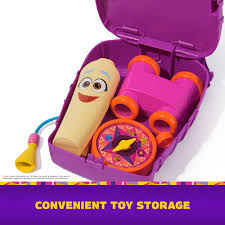 🎒 Incluye accesorios de explorador: mochila morada, mapa retráctil, binoculares y brújula.