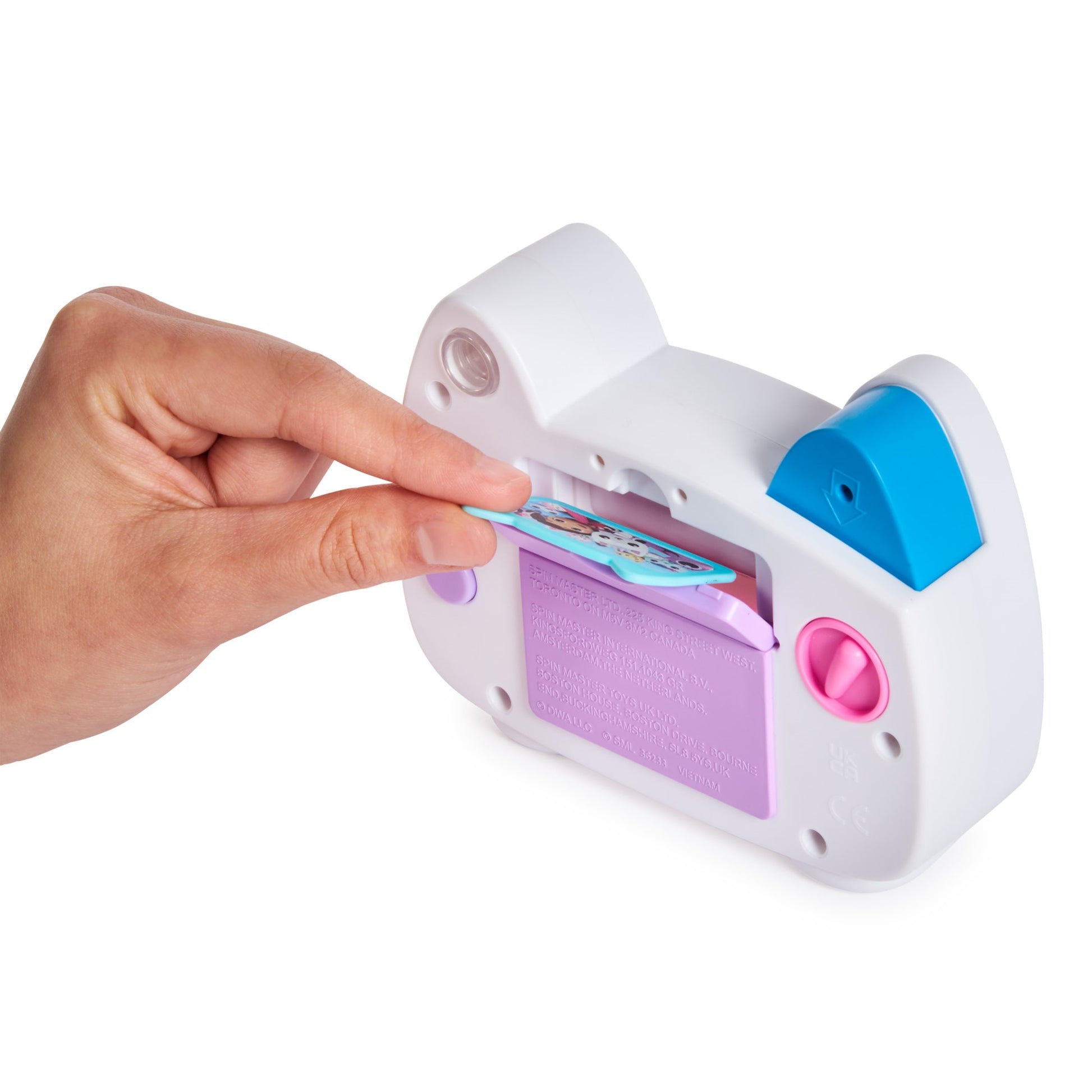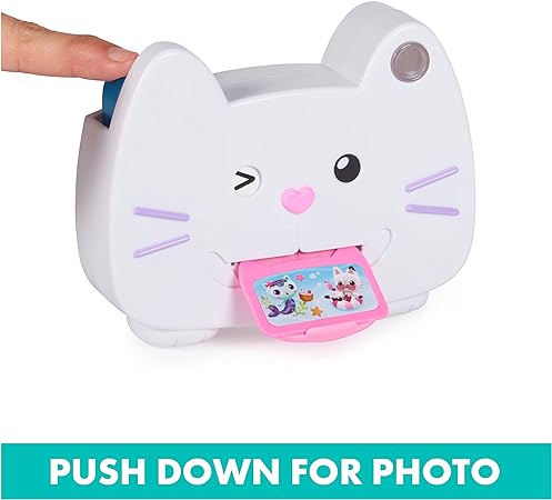 - GABBY’S KITTY CAMERA TOY: Smile and say cheese, with this Gabby’s Dollhouse kids camera! Place the three plastic photos in the rear image panel and click, to watch a photo pop out of Kitty’s mouth!