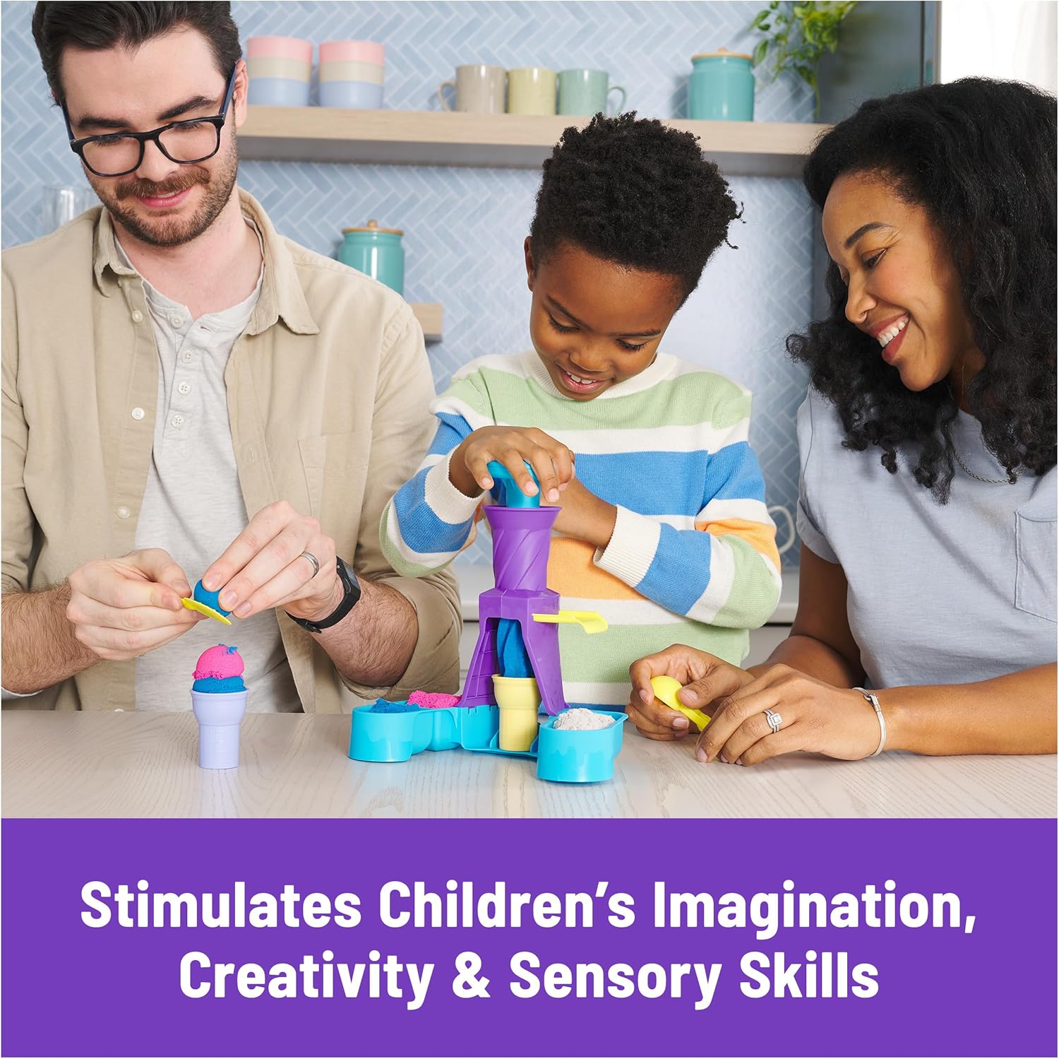 Kinetic Sand, Soft Serve Station, 14oz of Play Sand (Blue, Pink & White), 2 Ice Cream Cones & 2 Tools, Sensory Toys, Christmas Gifts for Kids Ages 5+