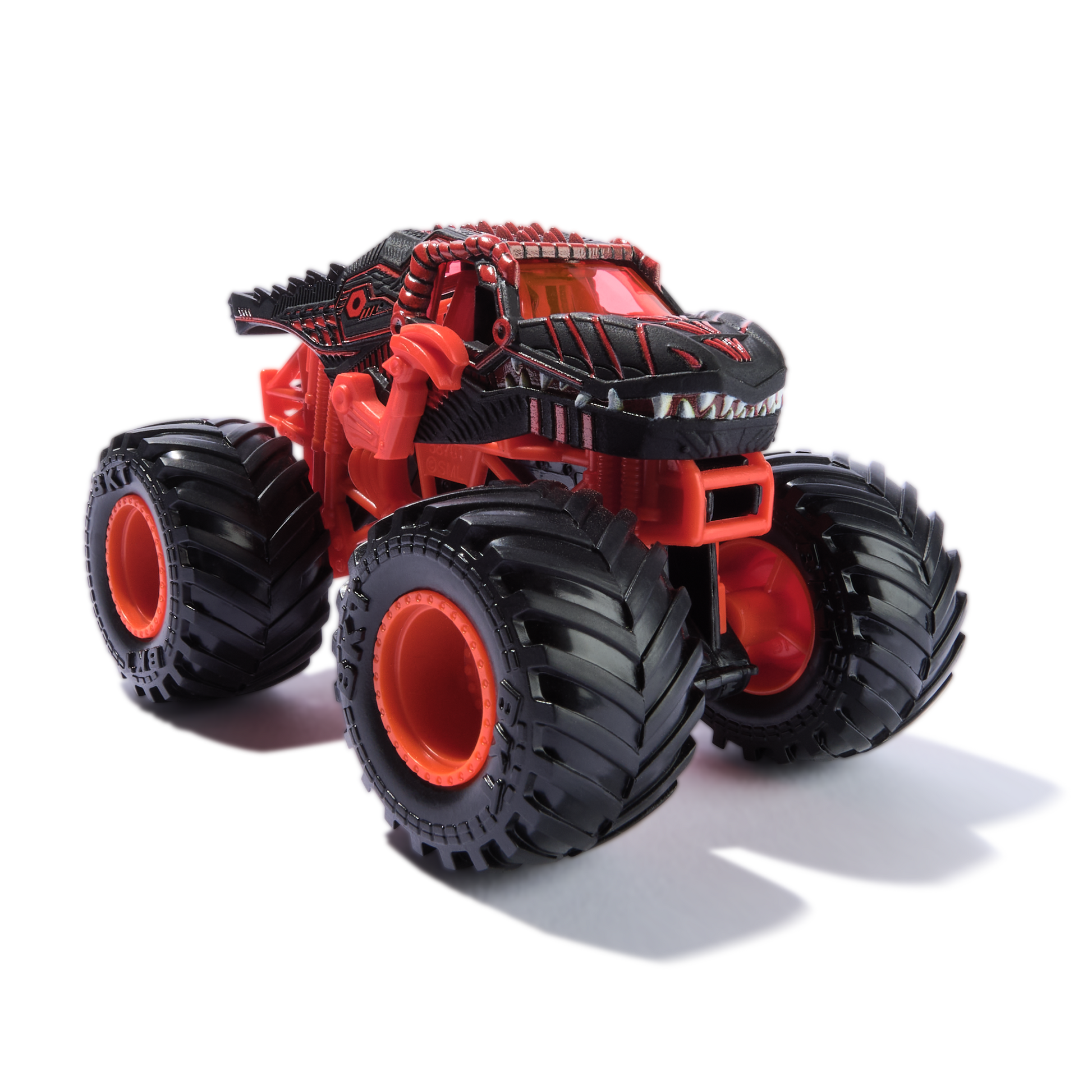 Each truck features authentic graphics, detailed chassis, and oversized tires that make them perfect for racing, crashing, and performing stunts — just like in the real Monster Jam shows!