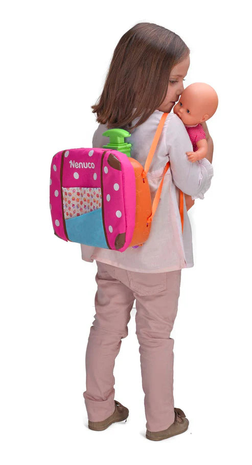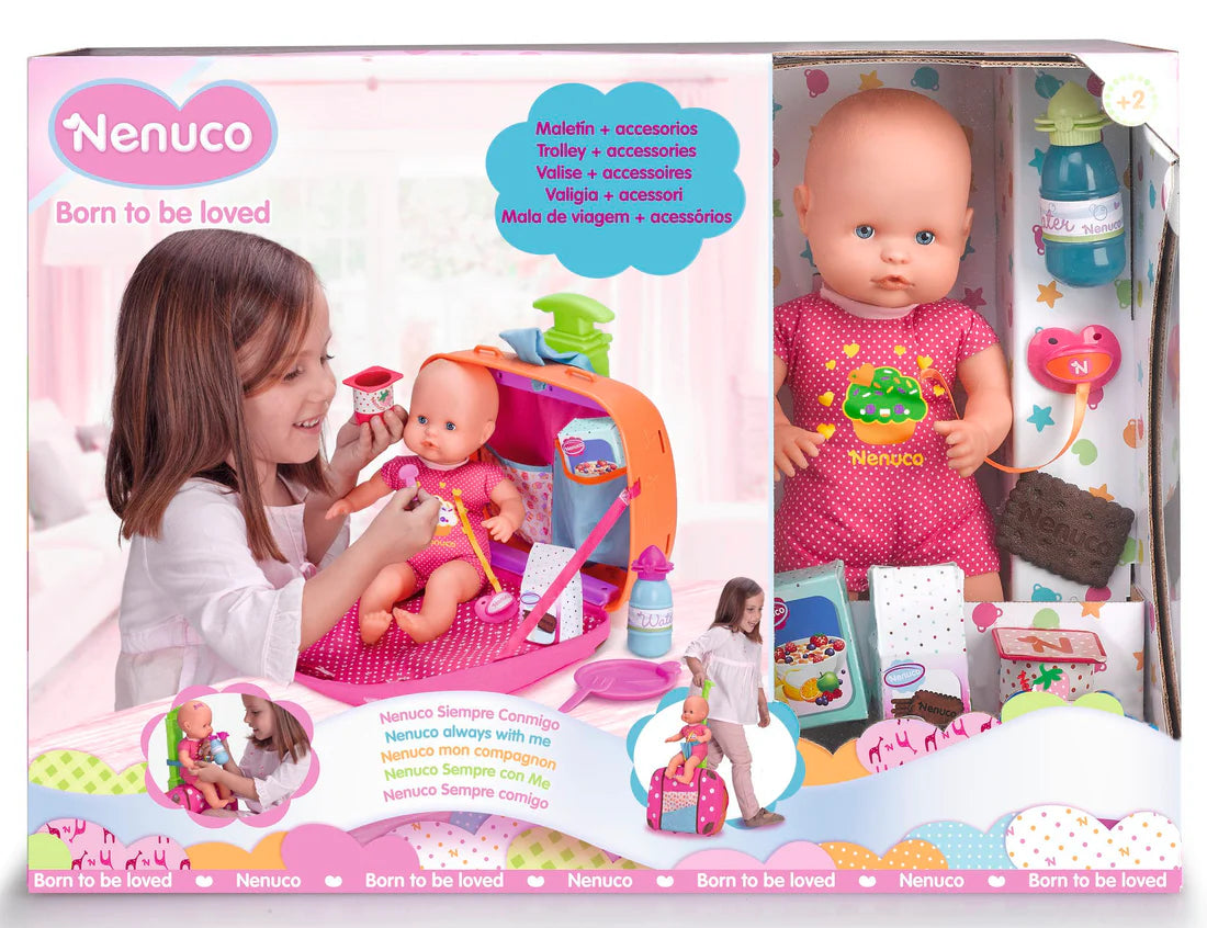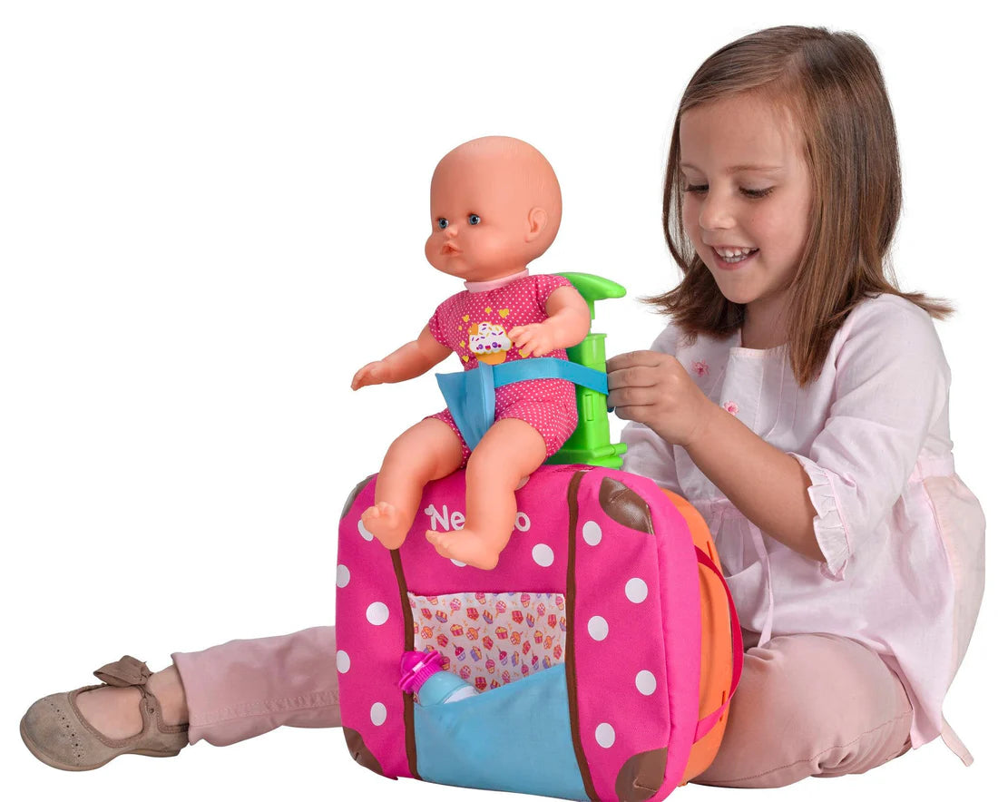 - Nenuco Always with Me Baby Doll is ready for adventure with her 2 in 1 travel bag!