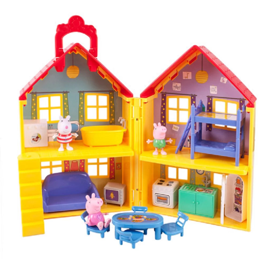 Peppa Pig Deluxe House Playset You're invited to hang out with Peppa, Suzy and George in their House! The playhouse opens to reveal rooms filled with fun furniture. It includes over 15 play pieces and folds up closed for on-the-go adventures. Come over to Peppa's house for a playdate that's full of great surprises!