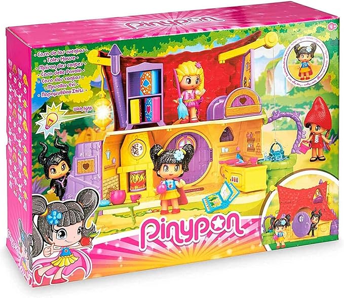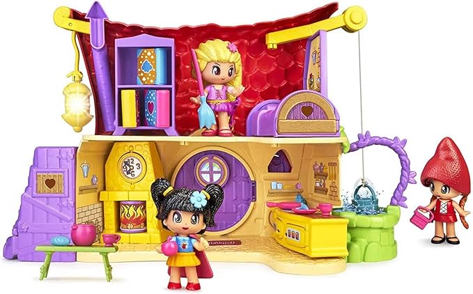 Para jugar a los cuentos clásicos favoritos con Pinypon. La Casa de los Cuentos de Pinypon incluye todos los lugares, rincones y accesorios emblemáticos de los cuentos favoritos: la torre de Rapunzel, la cocina que comparten Cenicienta y Blancanieves, la cama con el lobo de Caperucita, la habitación de Wendy del cuento de Peter Pan y el taller de carpintería de Gepeto. Incluye la figura de Cenicienta. Los juguetes y muñecas de Pinypon son ideales porque puedes intercambiarles la ropa, el pelo, y todos los complementos y accesorios.