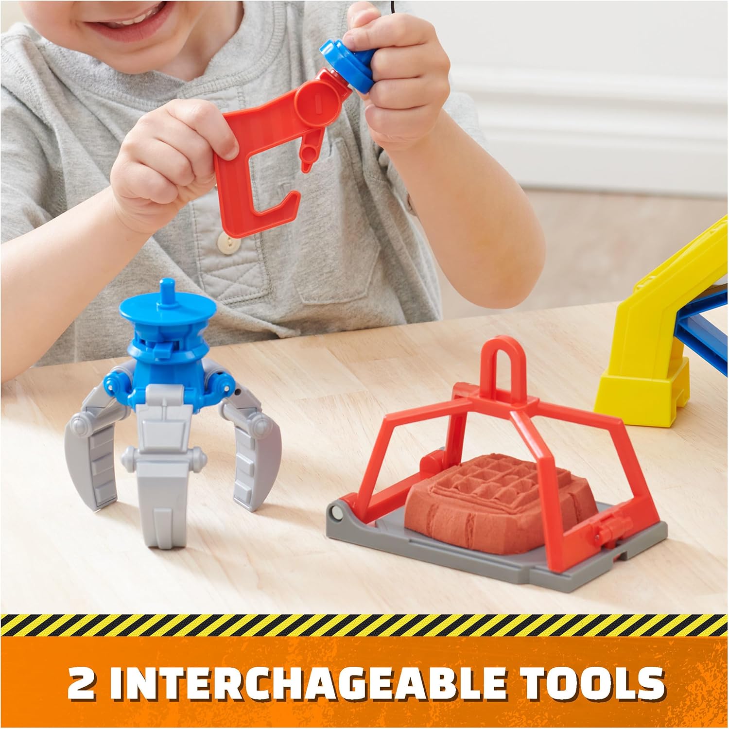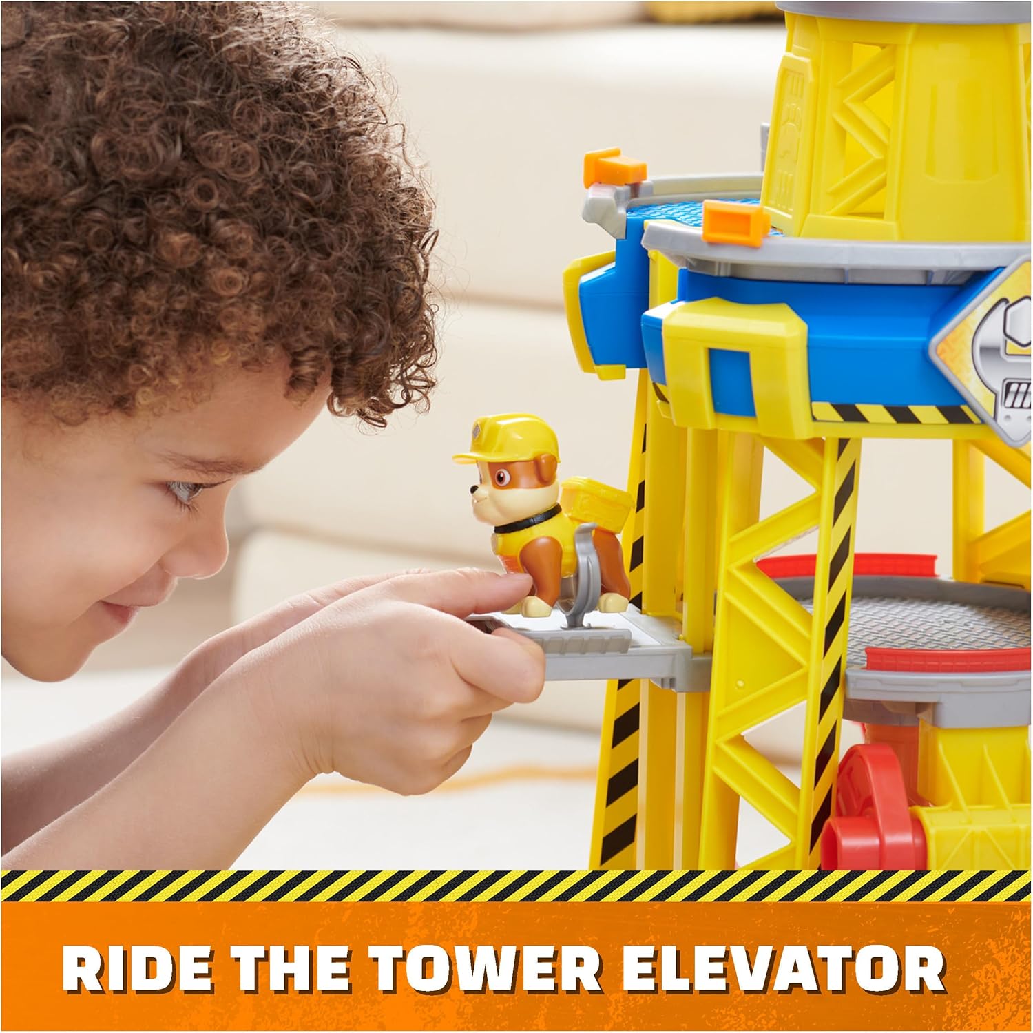 Get ready to ‘Bow-Wow Build” with your favorite PAW Patrol pup, Rubble & a toy bulldozer with working construction tools, in the Rubble & Crew, Crane Tower Playset! The Crane Tower looks just like it does in the show and features exciting kids construction toys like a rotatable crane toy, with an additional claw attachment, that kids can use to hoist things up and down! The tower also includes a Kinetic Build-It compound molding system that lets you load two of the double sided molds, with either a red or brown kinetic sand compound, and then pull down on the giant red lever to lower the impactor and form your own building blocks and place them on the base platform! Once your blocks are ready, place Rubble in the elevator and raise him to the top of the tower, and into the crane control pod, then use the crane to lift the blocks and move them where you want them! Then, for one last surprise, push the giant red button at the front of the tower to activate the lights and hear sounds and phrases that you know from the show! For even more exciting ways to play, look for all the Rubble & Crew construction truck toys and toy figures and playsets with Kinetic Build-It sand, along with the Bark Yard Workshop playset and to expand your world of pretend play building toys even more (each sold separately)! Bring the excitement of the Rubble & Crew series to life with the Crane Tower Playset!
