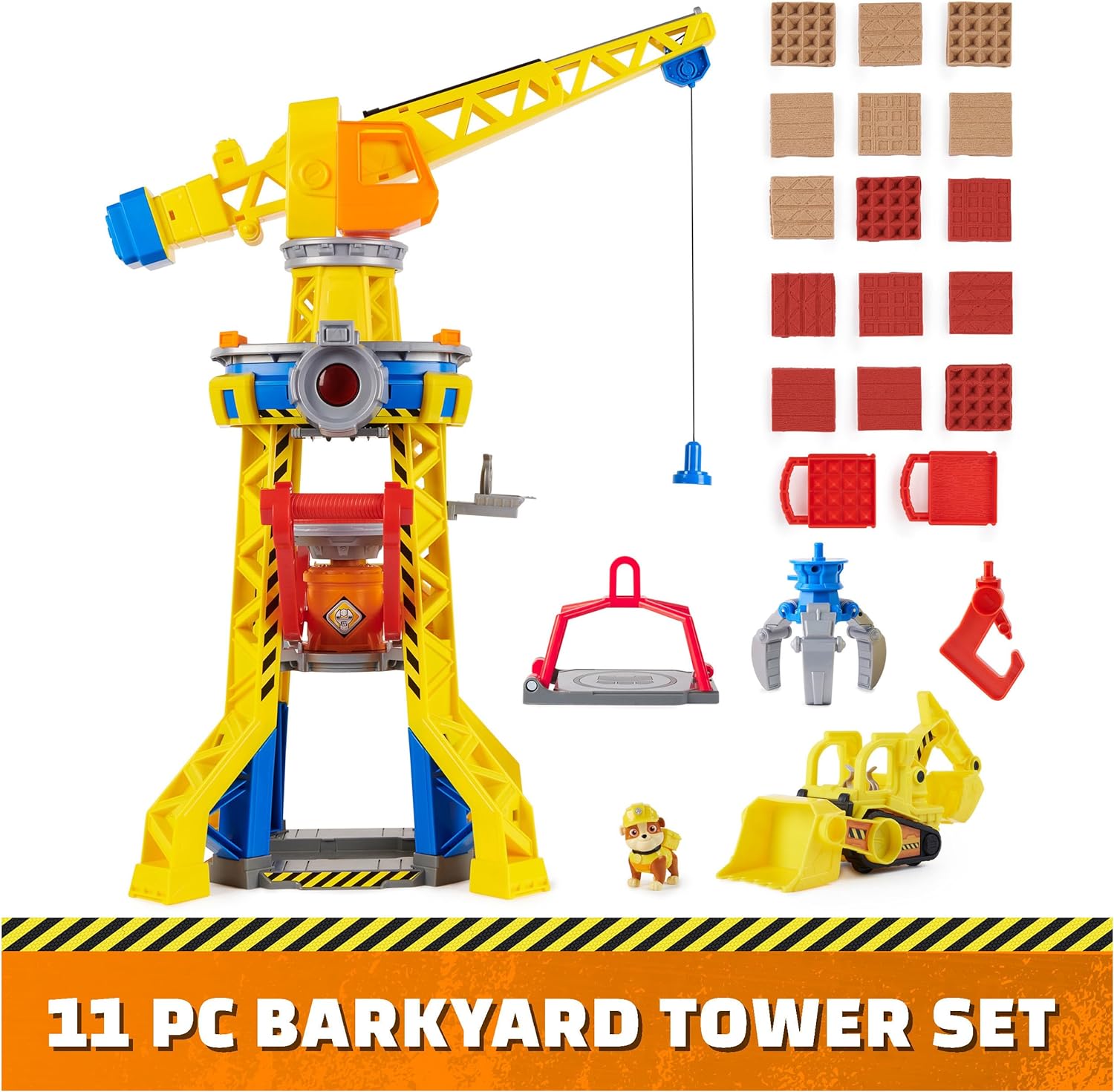 Rubble & Crew, Bark Yard Crane Tower Playset with Action Figure, Toy Bulldozer & Kinetic Build-It Play Sand, PAW Patrol Kids Toys for Boys & Girls 3+